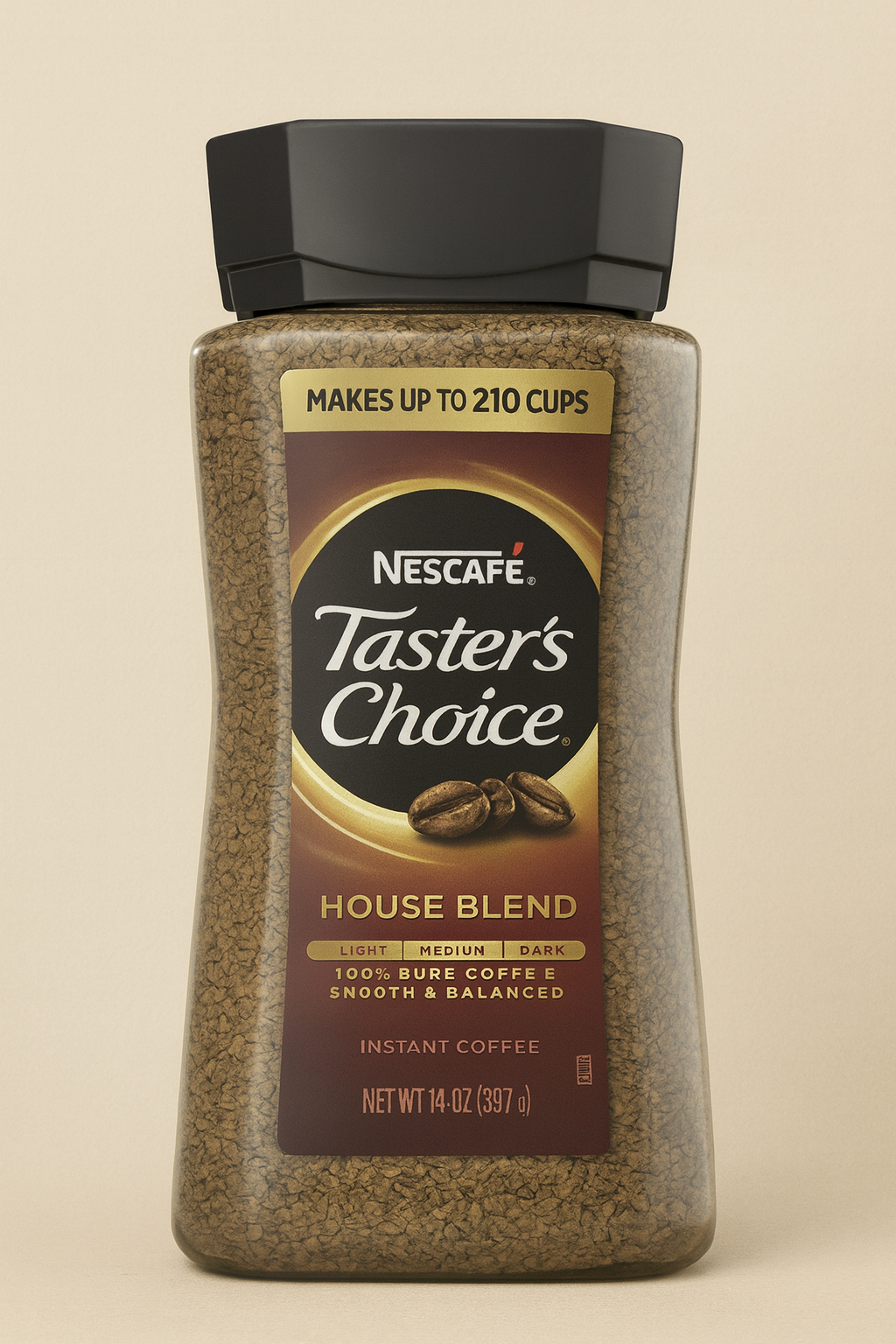 El Café Instantáneo Nescafé Taster’s Choice House Blend 14 oz ofrece un sabor suave, balanceado y 100% puro. Rinde hasta 210 tazas, ideal para disfrutar en casa u oficina. Se disuelve al instante, brindando el aroma y sabor de un café recién hecho en segundos.