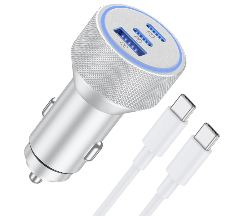 Carga simultánea de 3 puertos: El cargador de coche USB C, equipado con dos puertos USB-C y un puerto USB-A, puede cargar hasta 3 dispositivos simultáneamente, con una potencia total de 67 W. El cargador de coche admite una alta potencia PD de 37 W (máx.) y QC de 30 W (máx.), lo que permite cargar rápidamente todos los teléfonos y dispositivos electrónicos habituales.